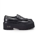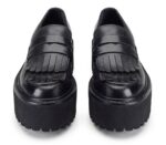 I mocassini AXL realizzati in pelle nera di Cult reinterpretano in chiave inedita e contemporanea il classico penny loafer con frangia. Poggiano su una maxi suola extralight in EVA impreziosita con l’iconica targhetta metallica con il logo del brand, questo modello è l’espressione di un design senza tempo e stile