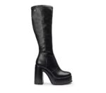 I plateau esagerati sono una delle tendenze più cool della stagione. Li ritroviamo in questi stivali al ginocchio di Cult con tomaie in pelle liscia e gambali aderenti che assicurano una silhouette slanciata. Resi facili da indossare grazie a una zip interna. Da abbinare a gonne e abiti mini. Altezza tacco 12cm