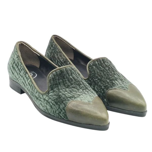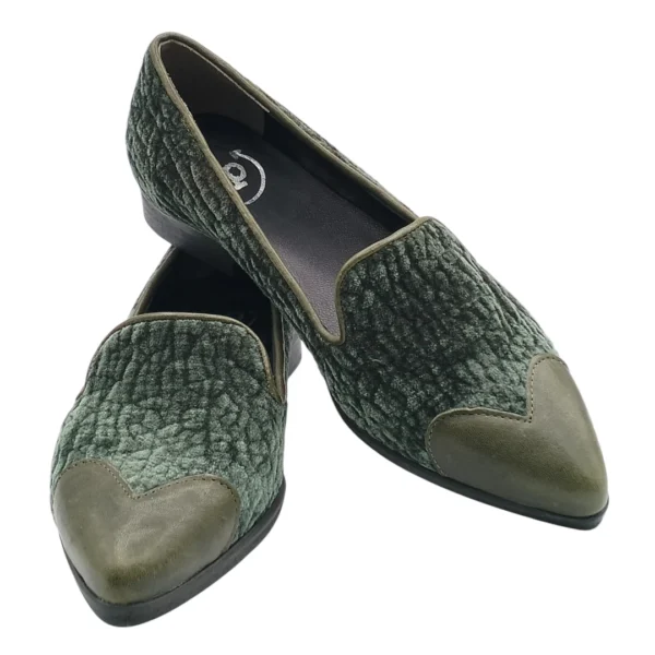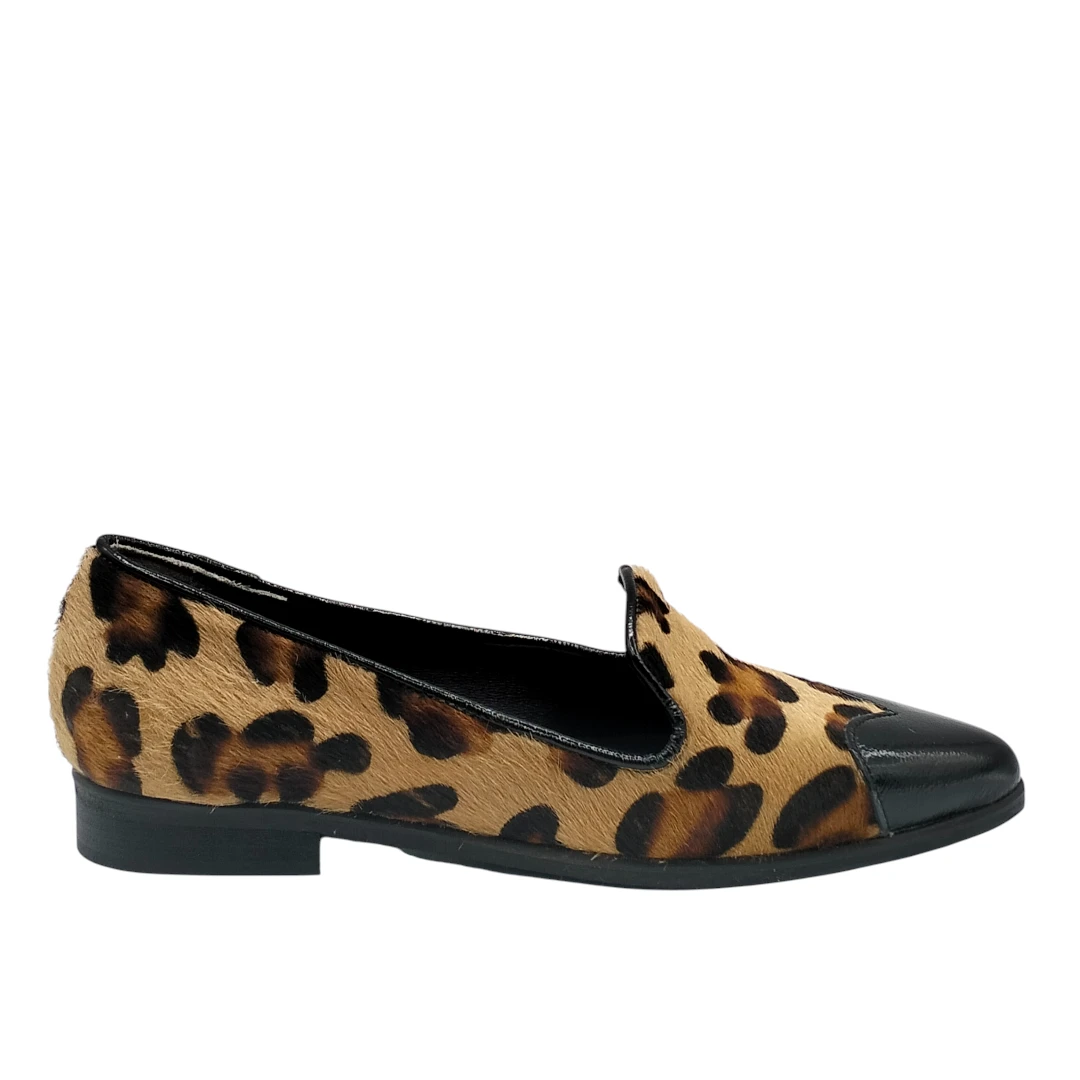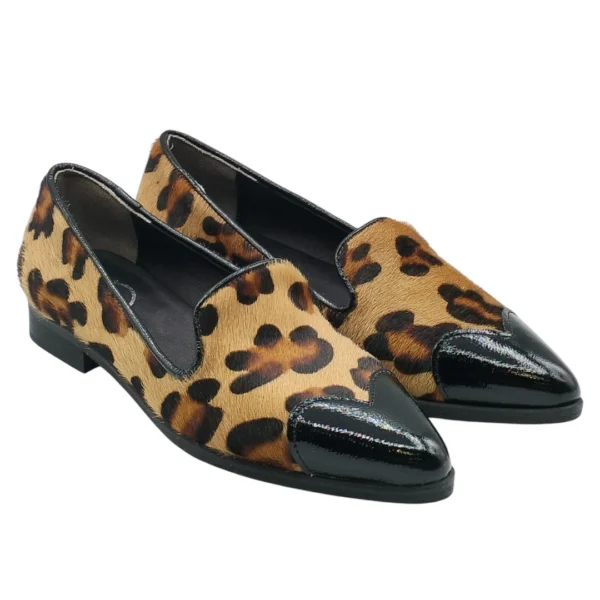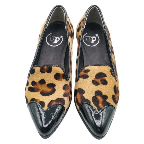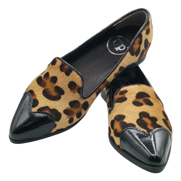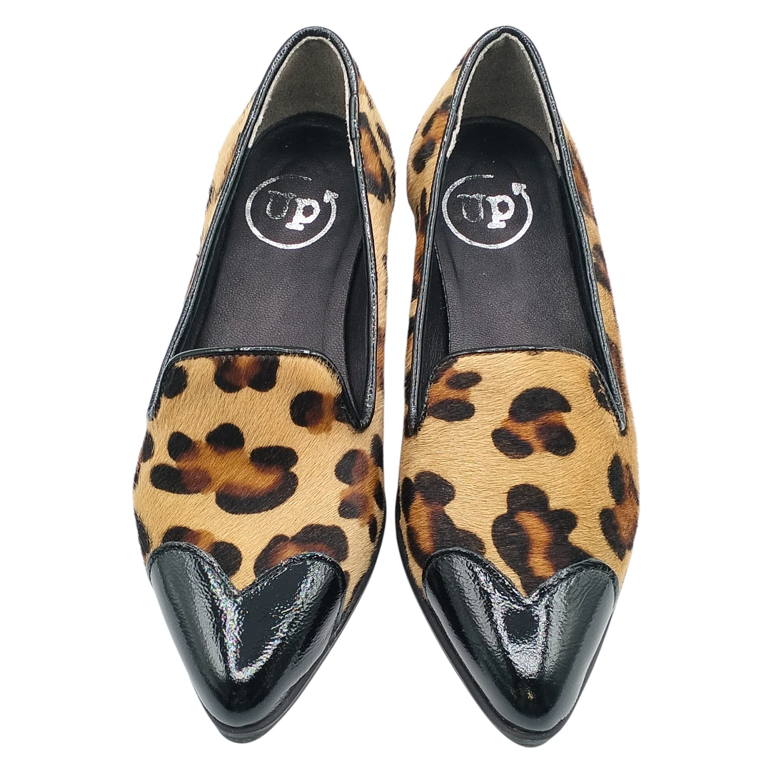Ballerina modello friulana. Totalmente in pelle con tomaia in cavallino maculato e pelle lucida o Velluto e vitello, a seconda della variante colore.