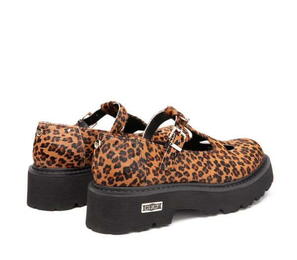 Questi mocassini modello Mary Jane dall’anima rétro reinterpretati in chiave Cult, con stampa animalier elevano dallo stile college allo status di una ragazza cool. Realizzati in pelle, il design unisce linee minimal a materiali innovativi, come EVA leggera che definisce la suola. L’iconica targhetta con logo lettering spicca esaltando la fibbia metallica e la linea sinuosa