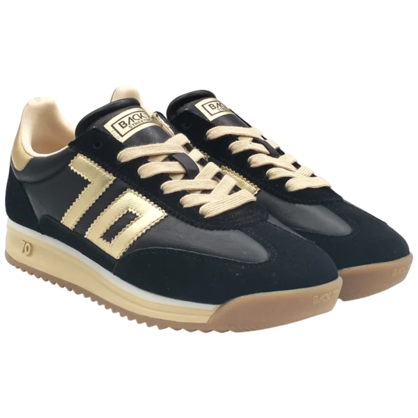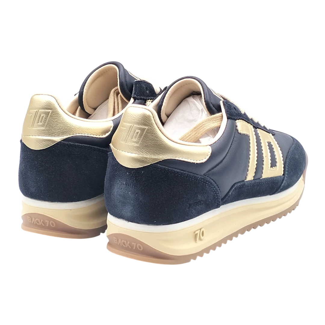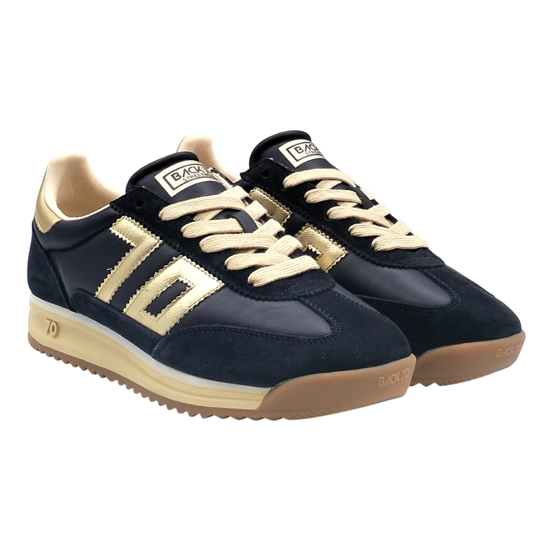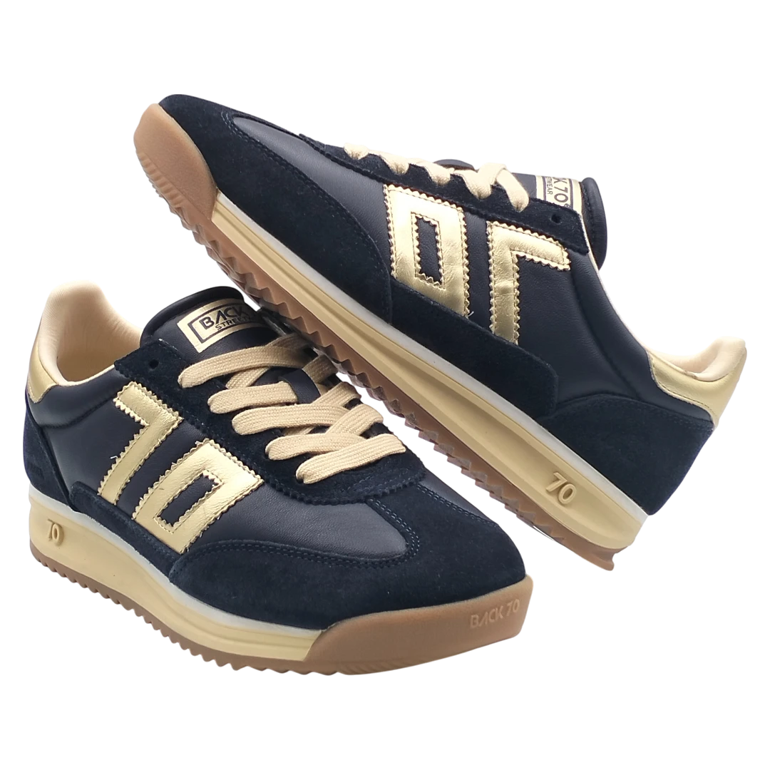 Sneakers back 70 in morbidissima nappa con inserti in camoscio e logo in pelle laminata.