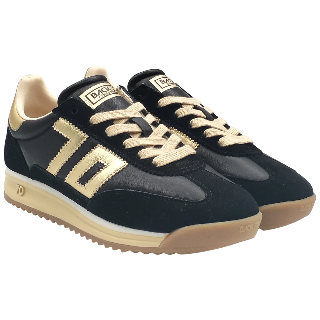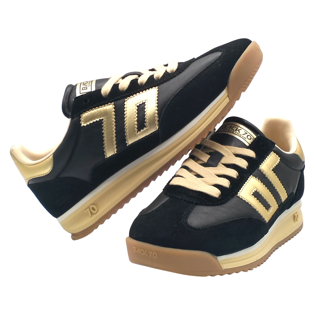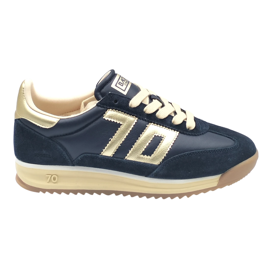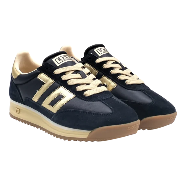 Sneakers back 70 in morbidissima nappa con inserti in camoscio e logo in pelle laminata.