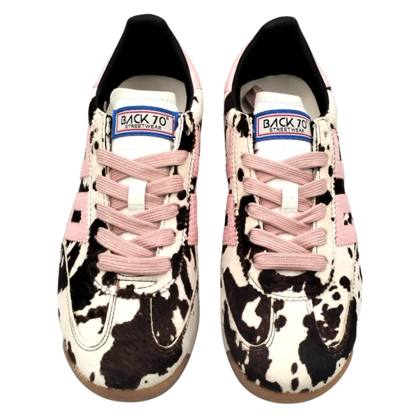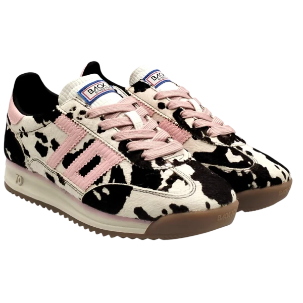 Sneakers Back 70 cavallino muccato ed inserti in pelle stampata.