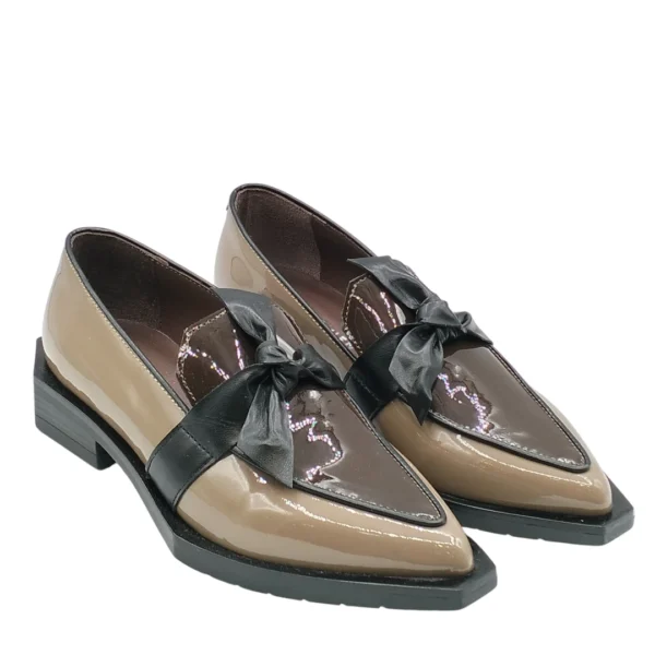 ovviamente tutti in pelle pregiata. Anche l’accessorio annodato sulla tomaia è in pelle morbidissima.